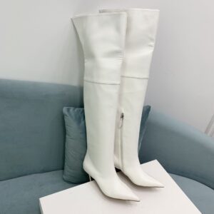 Amina Muaddi Pointed-Toe Over-the-Knee Boots! Material: Cowhide