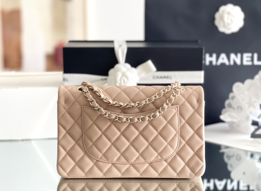 (Authentic Quality)Replica Chanel Classic Flap Inside Stitch Medium Size 25.5 Caviar Leather In Light Beige