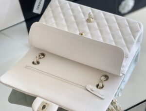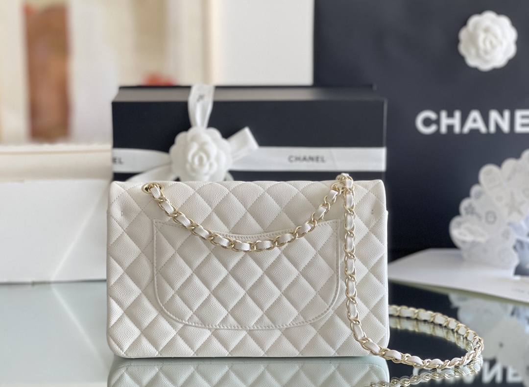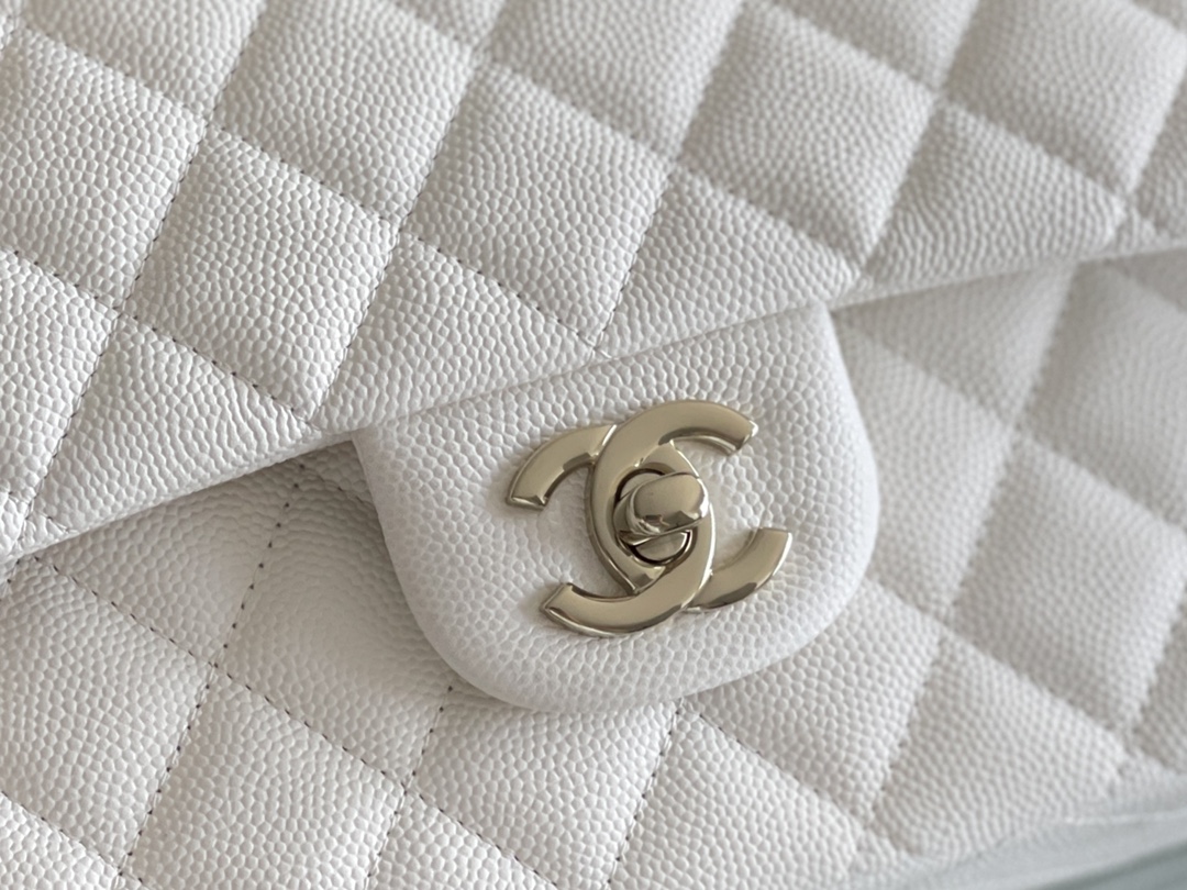 (Authentic Quality)Replica Chanel Classic Flap Inside Stitch Medium Size 25.5 Caviar Leather In Pure White