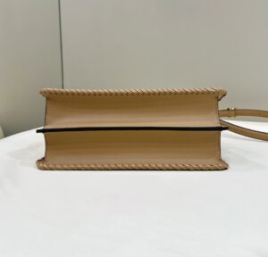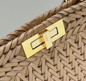 The Replica Fendi I See U Peekaboo Beige handbag is crafted from premium cow leather knit, offering a soft and durable texture. Measuring 33 cm wide, this elegant beige handbag suits both casual outings and formal occasions, making it a versatile addition to your collection.