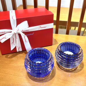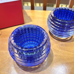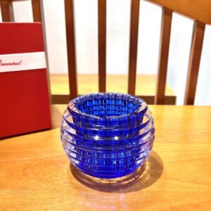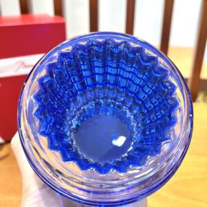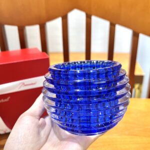 EYE Small Candlestick for Party Enjoyment. It adopts external horizontal cutting and internal vertical cutting techniques to create a brilliant optical effect, making the light more abundant and complex. The works of this collection bring joy and surprise within the range of perceived brightness changes. The thin layers ripple gently and sparkle, creating a dynamic effect and forming a unified rippling wave, which is fascinating. Size: Height 7 * Diameter 9.5cm; Colors: Emerald Green, Blue