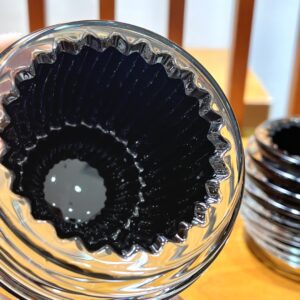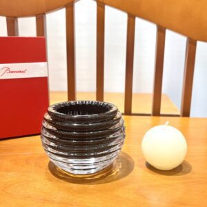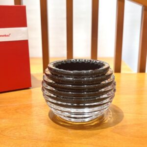 EYE Small Candlestick for Party Enjoyment. It adopts external horizontal cutting and internal vertical cutting techniques to create a brilliant optical effect, making the light more abundant and complex. The works of this collection bring joy and surprise within the range of perceived brightness changes. The thin layers ripple gently and sparkle, creating a dynamic effect and forming a unified rippling wave, which is fascinating. Size: Height 7 * Diameter 9.5cm; Colors: Emerald Green, Black