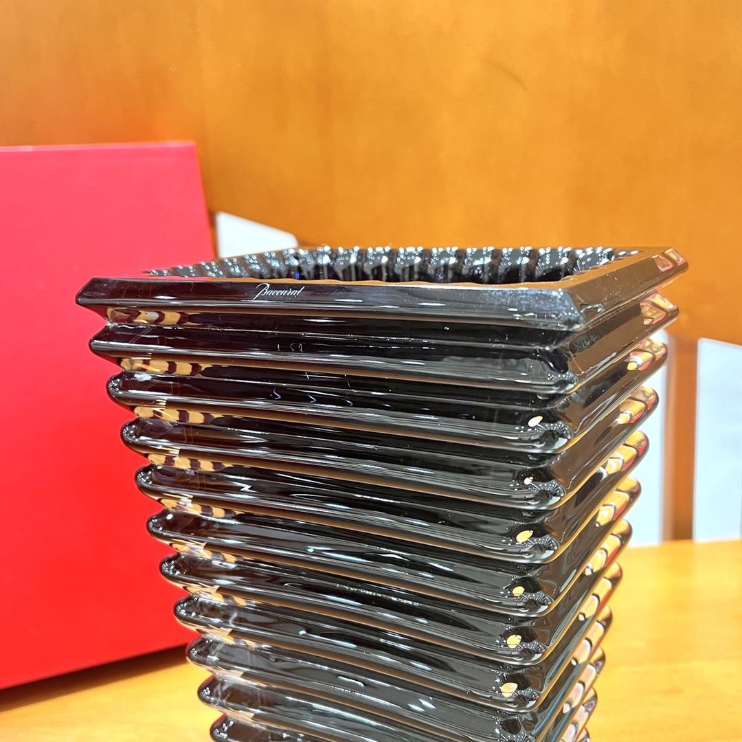 EYE Crystal Purple · Crystal Square Vase. Adopting external horizontal cutting and internal vertical cutting techniques, it creates a brilliant optical effect, making the light more abundant and complex. The works of this collection bring joy and surprise within the range of perceived brightness changes. The thin layers ripple gently and sparkle, creating a dynamic effect and forming a unified rippling wave, which is fascinating. Size: Small – Height (H) 20 * Length (L) 13.6 * Width (W) 10cm; Large – Height (H) 30 * Length (L) 18 * Width (W) 13.5cm