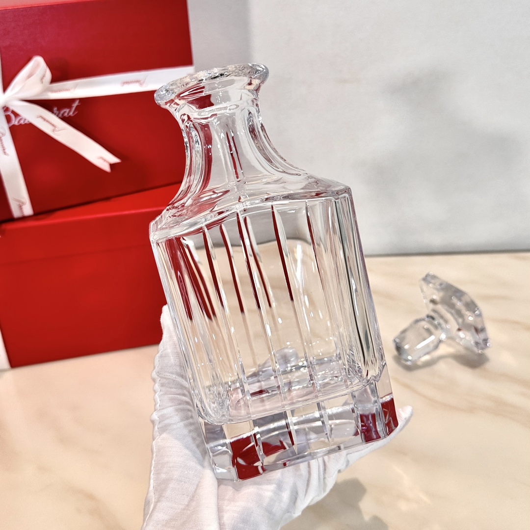 The HARMONIE Collection adopts vertical strip patterns to highlight a three-dimensional effect a feature applied to all items of this collection. The diamond-cut stopper makes the wine decanter with a complex geometric design even more brilliant. Elegant lines extend along the outer edge of the decanter, from the bottom to the shoulder, highlighting its three-dimensionality and texture. Size: Height 25.5cm * Base Diameter 9.3cm * Cap Diameter 7cm, 900ml