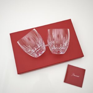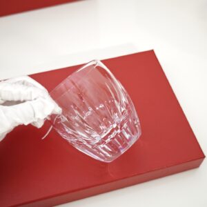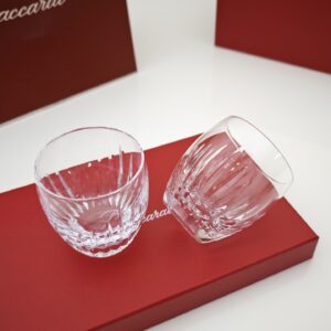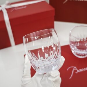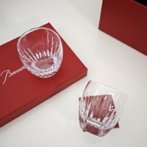 Item No. 5209880. The MASSENA Collection stands out with its distinctive appearance—boasting smooth outlines and excellent texture, like a modern-day Holy Grail. The intricate patterns form a striking contrast with the smooth curves of the rim, showcasing Baccarat’s extraordinary creative aesthetics. The deep diagonal cuts are directly embedded in the glass body, extending from the wide cup body all the way to the base. Size: Height 9cm, Rim 8cm, Base 4.5cm, 300ml