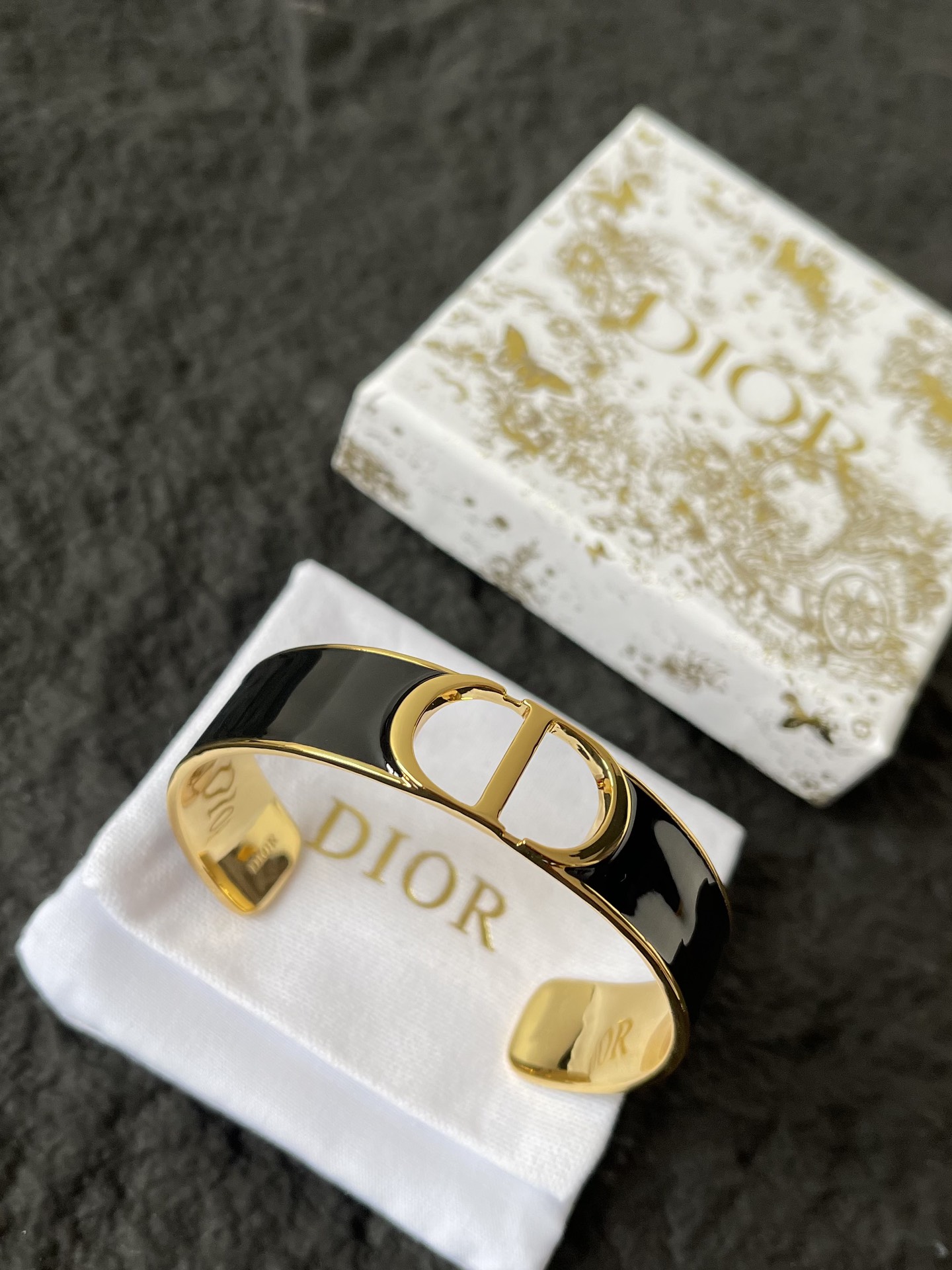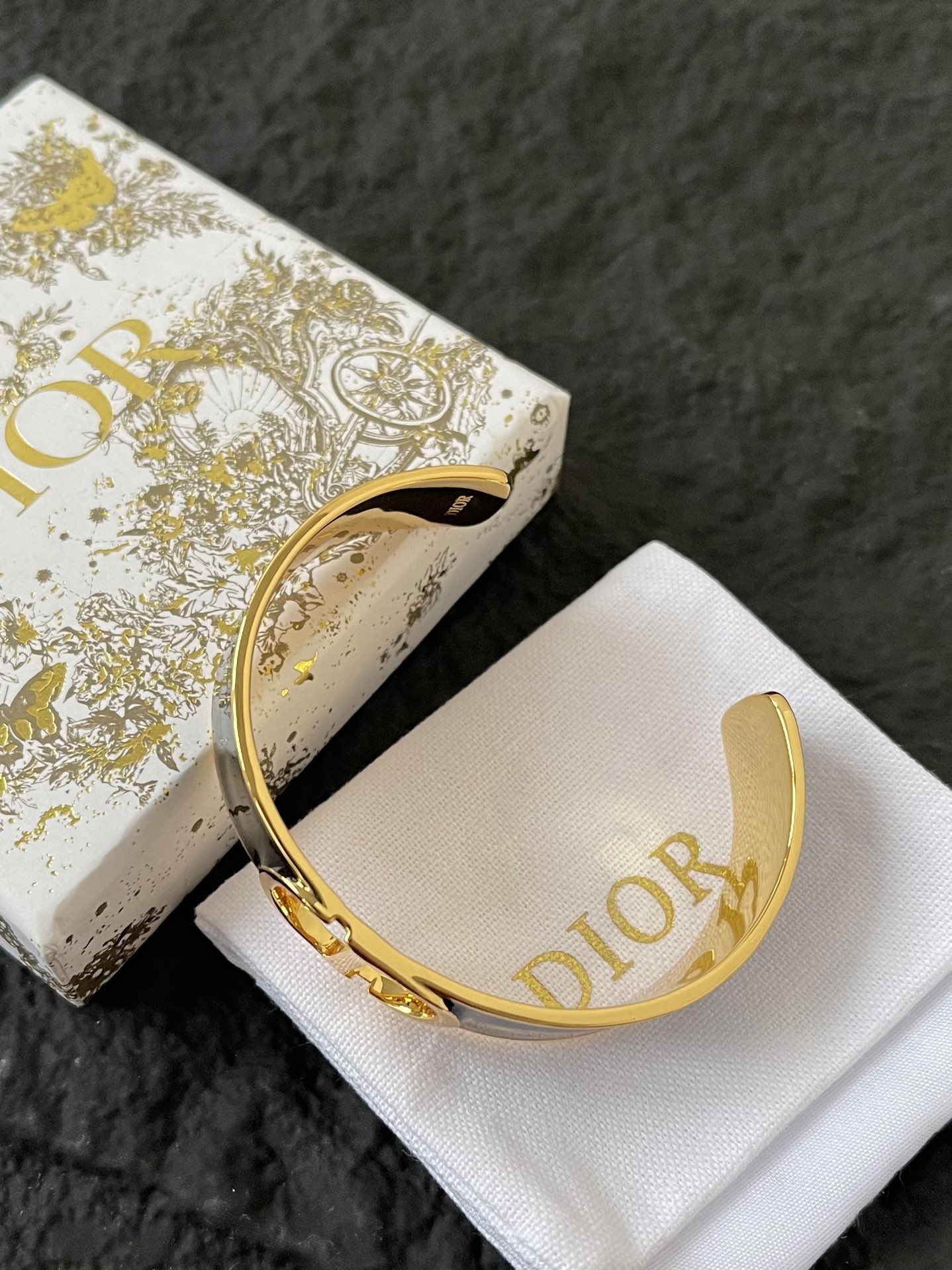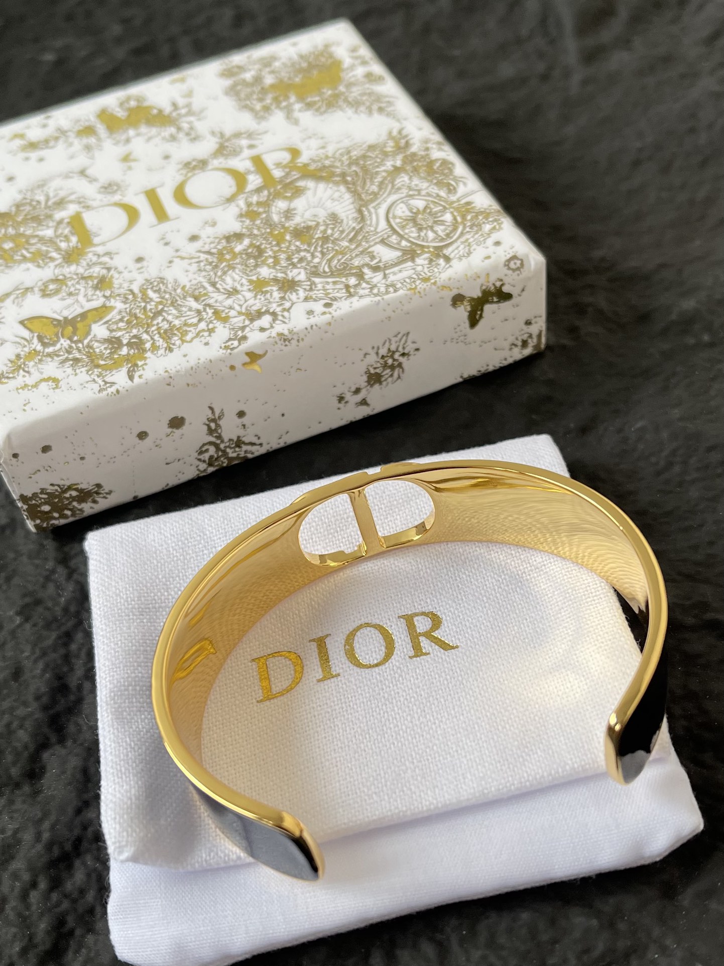 Dior 30 Montaigne Bracelet: Meticulously crafted from rigid gold-finish metal