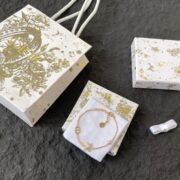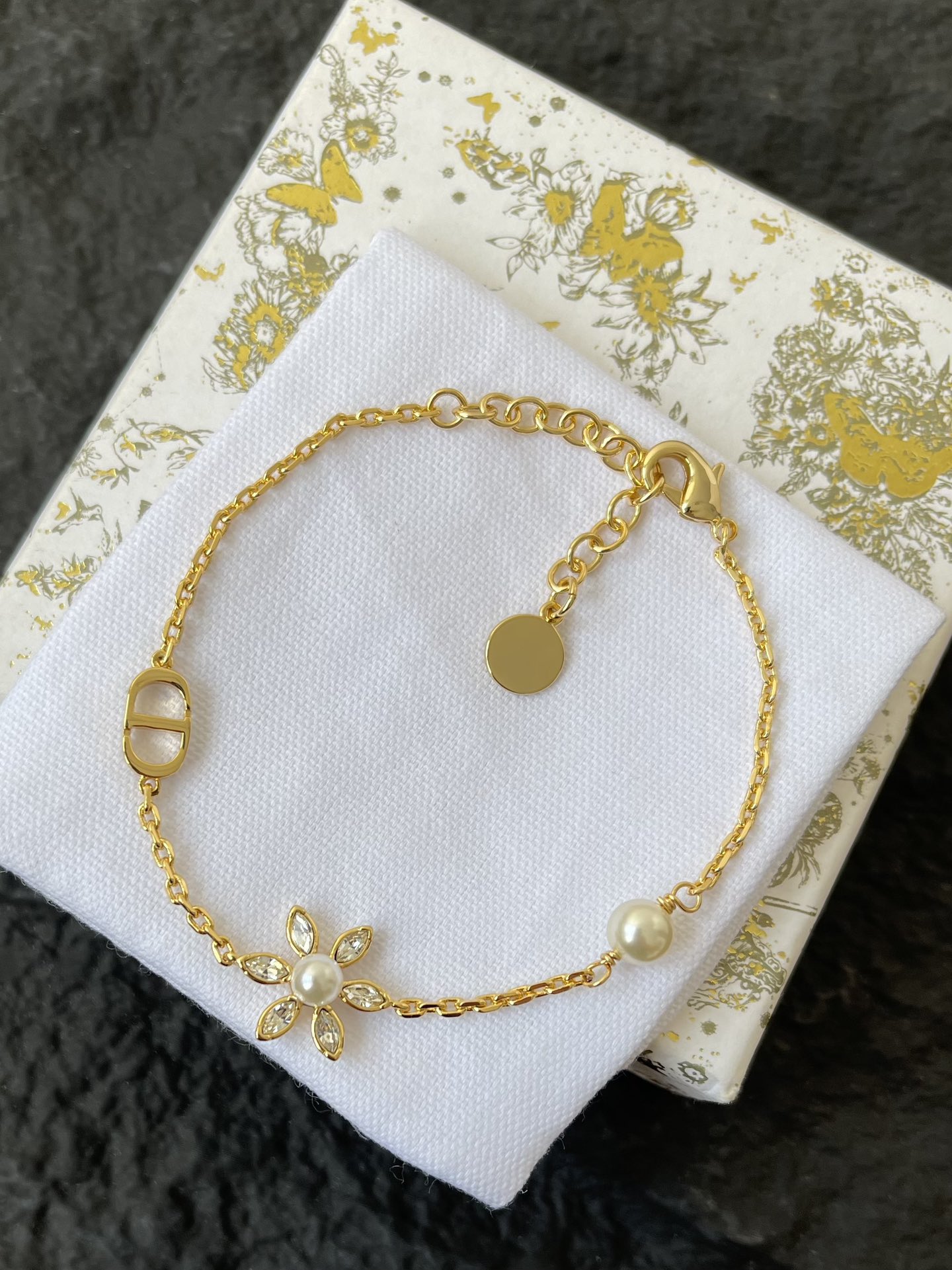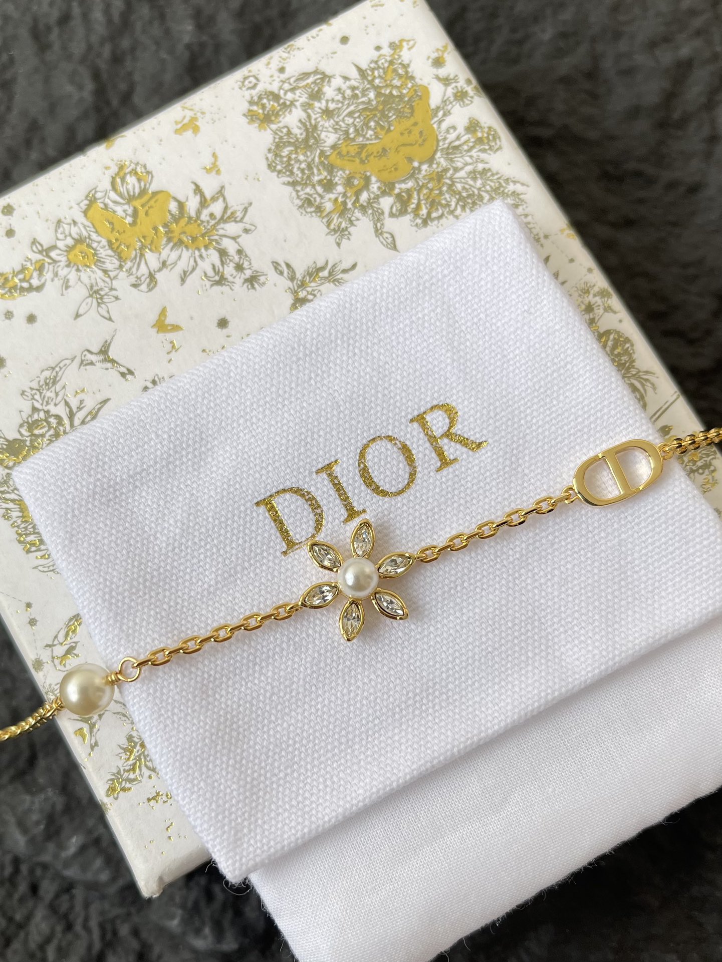 accented with CD logos and white resin beads, highlighting exquisite flowers adorned with silver-tone marquise-cut imitation crystals.