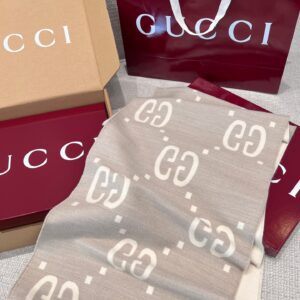 Size: 35x190cm, 91% Wool and 9% Silk, with jacquard brand signature elements