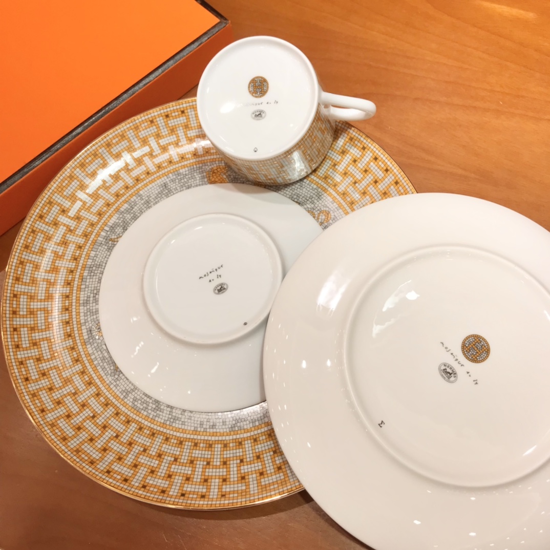 45% high bone china, fired at 1350°C! Each product is uniquely crafted with great attention to detail. Configuration: 10-inch flat plate *1, 8-inch flat plate *1, coffee cup *1, coffee saucer *1