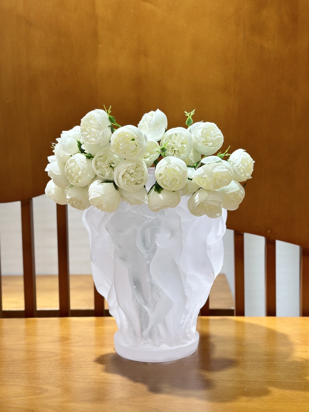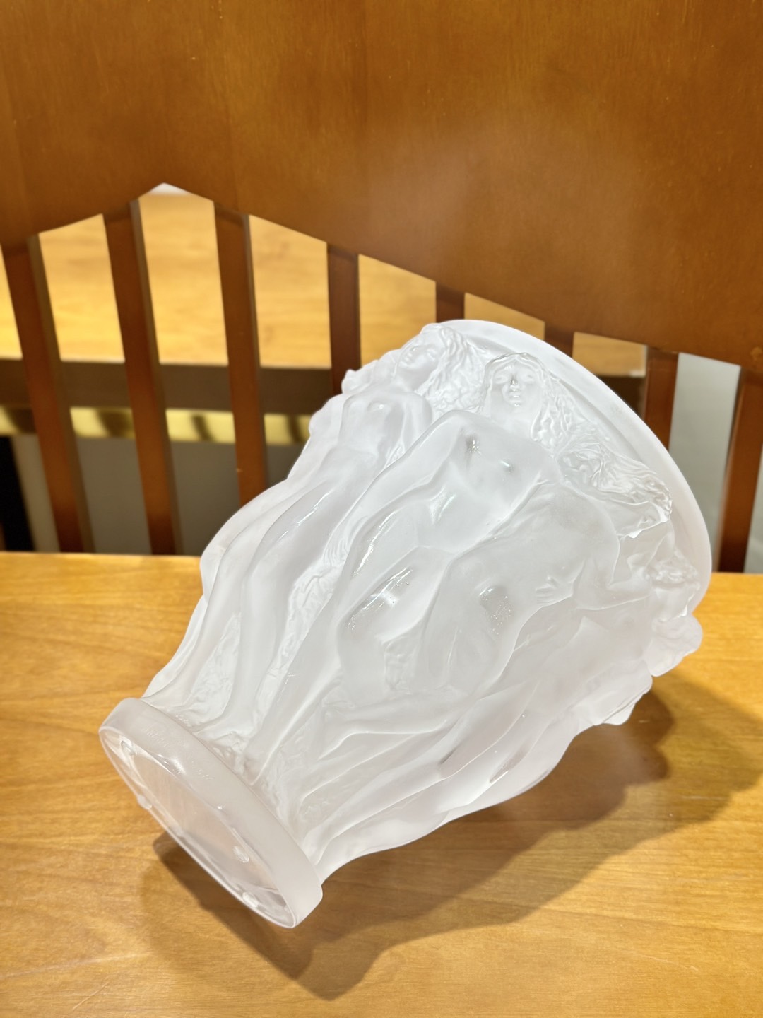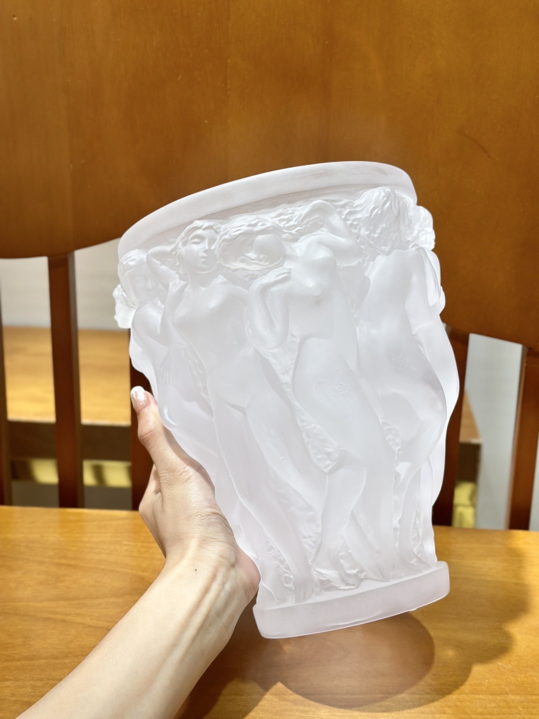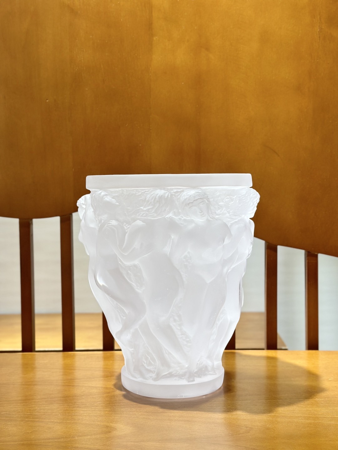 René Lalique’s boundless imagination and creative genius gave shape to the Bacchantes Vase. Its iconic design features the sensual beauty and curves of the young priestesses of Bacchus. Sizes: 15cm/24cm/32.5cm.