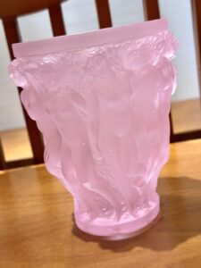René Lalique’s boundless imagination and creative genius led to the creation of the Bacchantes Vase. Its iconic design features the sensual beauty and curves of the young priestesses of Bacchus. Sizes: 15cm/24cm/32.5cm.