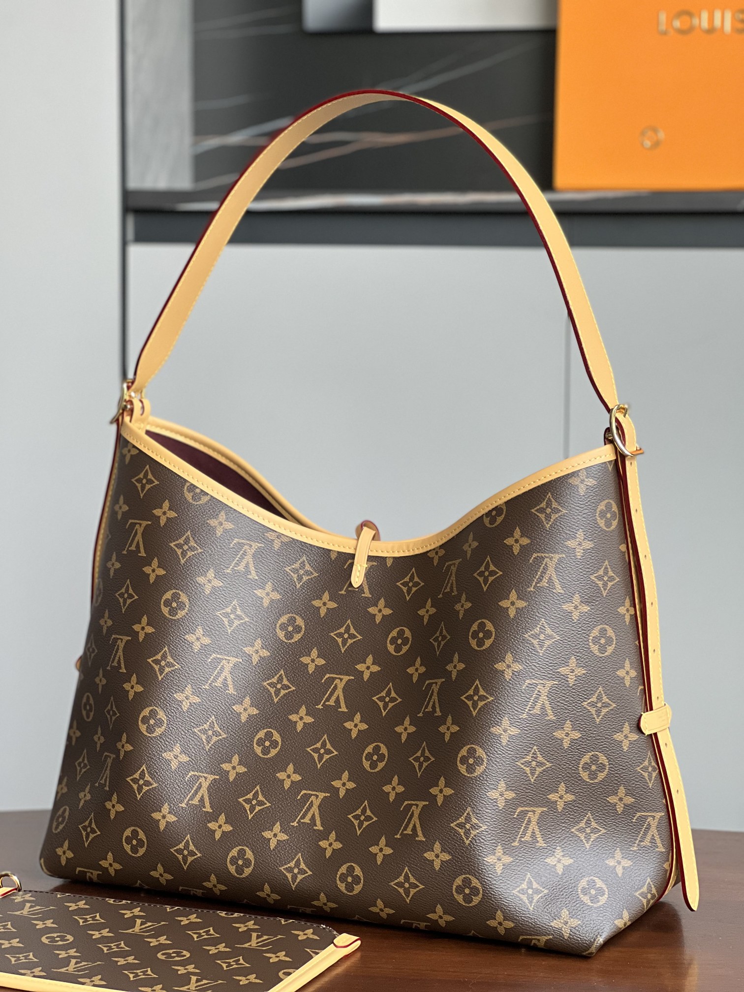 and a detachable zippered clutch adds an extra functional element. The buckle allows adjustment of the handle length. Reference Code: M46197. Dimensions: 393015 cm