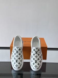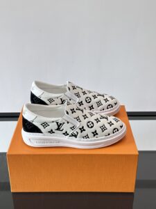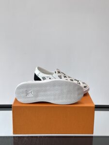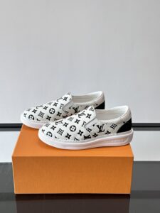 This pair is crafted from the iconic Damier Graphite canvas with LV logos embellishing the shoe body. The leather strap is adorned with an LV metal emblem buckle, paired with smooth calfskin trim and a rubber outsole decorated with Monogram flowers, exuding youthful vitality and elegant leisure charm. The Blake construction and hand-stitched upper skillfully create distinctiveness. It comes with a standard cowhide inner insole, offering a comfortable and soft foot feel! Size: 39-44 (Sizes 38 and 45 available on custom order)
