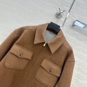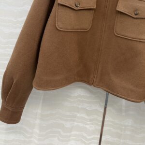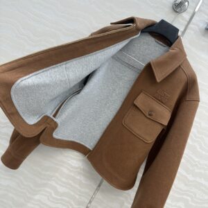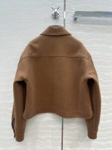 featuring a stylish lapel and a loose fit that creates an extremely slim look; made of imported 75% wool fabric with smooth pile, combined with pure cotton sweatshirt craftsmanship for a structured and shapely silhouette. Sizes: S/M/L. Size S Details: Shoulder Width 50cm, Bust 106cm, Garment Length 54cm
